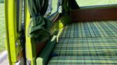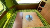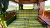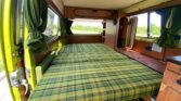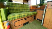 Designed for camping and road trips, the interior is highly functional with sleeping accommodations, storage solutions, and a fully equipped kitchenette. Upholstery and finishes maintain the classic Westfalia charm.