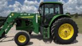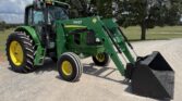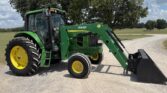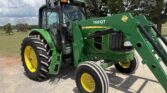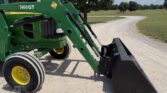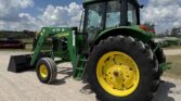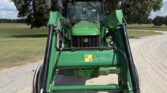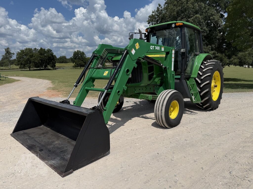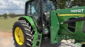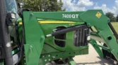 This unit comes with a John Deere 7400QT loader, making it well-suited for lifting, loading, and material handling tasks around the farm or job site.