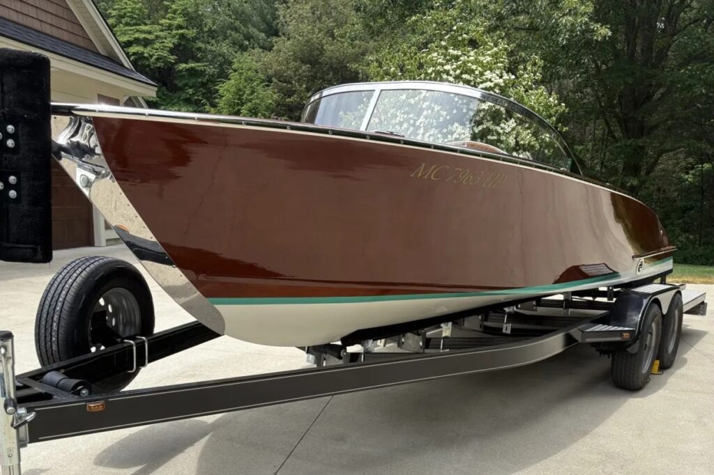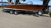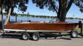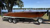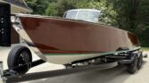 The 2021 Glen-L Tahoe 23’ Runabout is a beautifully crafted, classic wooden speedboat that combines vintage styling with modern performance. Built using mahogany and cold-molded marine plywood, this custom runabout features stunning varnished finishes and extremely low usage with only 13 hours of runtime.